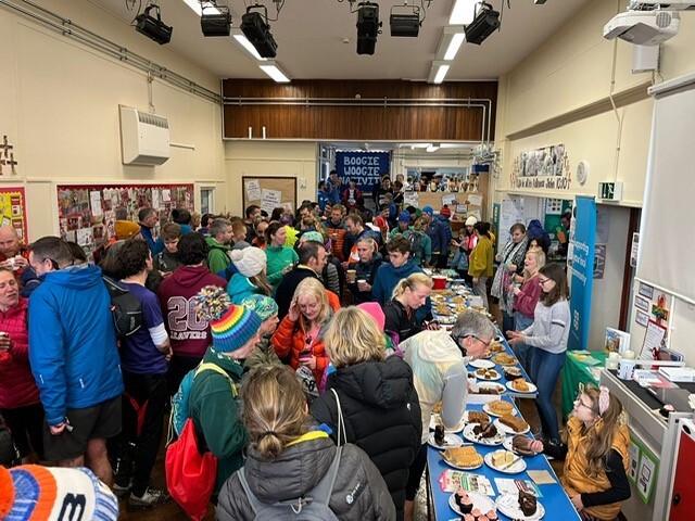 The race was started by Rev. Mike Gilbert, Rector of St Anne’s Church. We had 350 entrants and 279 starters on the day. The runners chased through the churchyard and crossed the 1608 historic bridge before running up the muddy fields of Bubnell with cheery marshals clapping them on their way. The ridge of Bank and Bramley Woods was particularly beautiful that, with an abundance of autumnal leaves and views over the Derwent Valley. An unavoidable icy pool at Bramley Farm tested waterproof socks to the limit. The going was easy along the river, before hitting the hill climb up to Curbar Gap - a true test of lung capacity. This year we had been given the go-ahead to run along Baslow Edge before spilling down Baslow Bar to the finish at St Anne’s Primary School. Although, rain was forecast this year it stayed away which allowed runners to enjoy a post-race chat with tea and cake in the school yard to recount the trials and tribulations of the event. What were the best shoes to wear? Grip for the mud or traction for those slippery rocks! Quite a quandary!