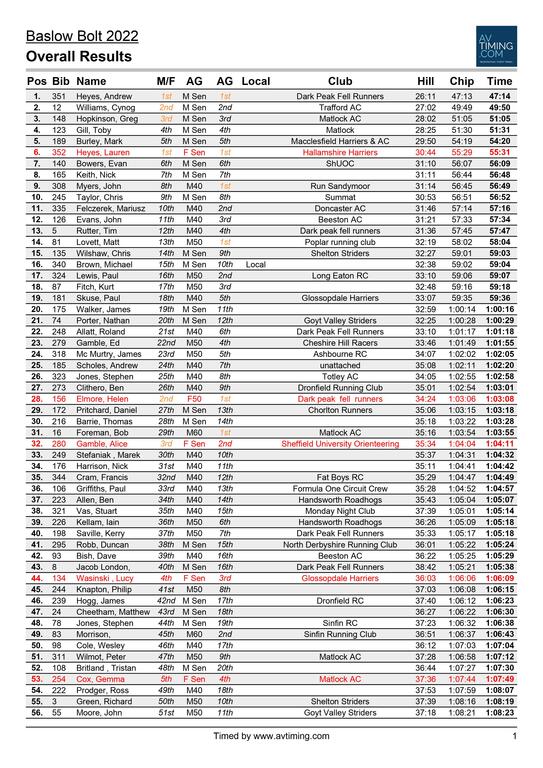 The Baslow Bolt is the second in the 2022/23 Outside Winter Race Series. The Hathersage Night Race took place on 17th Nov. The Winter Half Tour of Bradwell is on 11th Feb 2023 and the Grindleford Gallop on 11th March 2023. Great prizes are available to those that do well overall in these events.