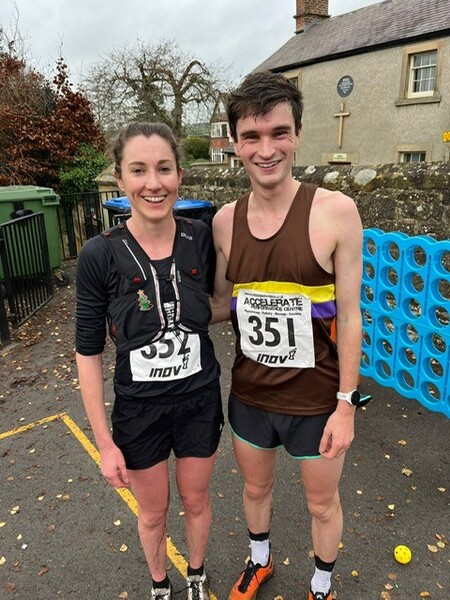 The overall winner was Andrew Heyes. At 47:13 his time beat the previous course record by over 3 minutes. To keep it in the family, his wife Lauren Heyes finished as first woman with a time of 55:29 (beating the female course record by 5 minutes). Christmas is looking good in the Heyes household this year as they both walked out with a Chatsworth Hamper and Rab vouchers to spend at Outside in Hathersage. Andrew and Lauren were running in memory of Andrew's sister, Jenny, who passed away in 2018. Her 3 children attend the village school, and the family are all very much a part of Baslow community life making this a particularly special win for the couple. This year we were very pleased to give prizes to all ages categories and local winners. Many thanks to all our sponsors (listed on our sponsors page). Local resident Michael Brown was particularly strong with a finishing time of 59:02!