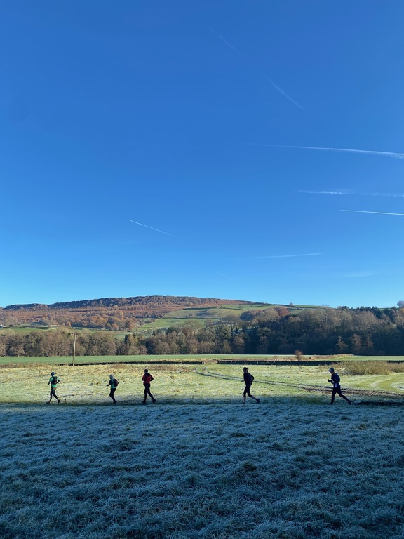 Muddy puddles on the Bubnell fields had frozen over, so the going was fast, but hard. Views from Baslow Edge were spectacular on this bright November morning, and, as usual, the cakes supplied by the Baslow School PTFA were plentiful after the course was complete.
